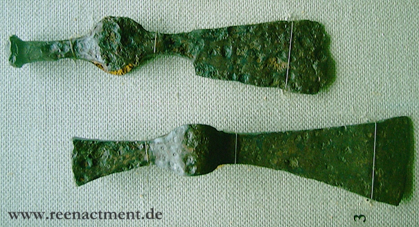 Beschreibung: Zwei Axtköpfe vom Fokosch-Typ, stellvertretend für sehr viele ähnlich Funde.