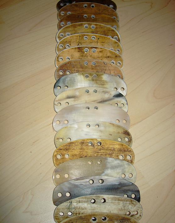 Da Rinderhorn ein Naturprodukt ist, sieht jede Lamelle individuell aus.