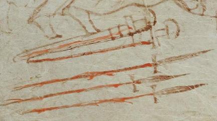 gibt es einige Abbildungen, die als Schwertscheiden mit Streifenmuster gedeutet werden könnten, dennoch dürften die Schwertscheiden üblicherweise einfarbig gewesen sein. Der größte Teil der Abbildungen zeigt