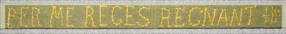 lauten “per me reges regnant” (durch mich regieren Könige) “benedictus do(minu)s de(u)s qvi docet manus” (gesegnet sei der Herr und Gott, der die Hand <zu führen> lehrt). Der erste Spruch stammt