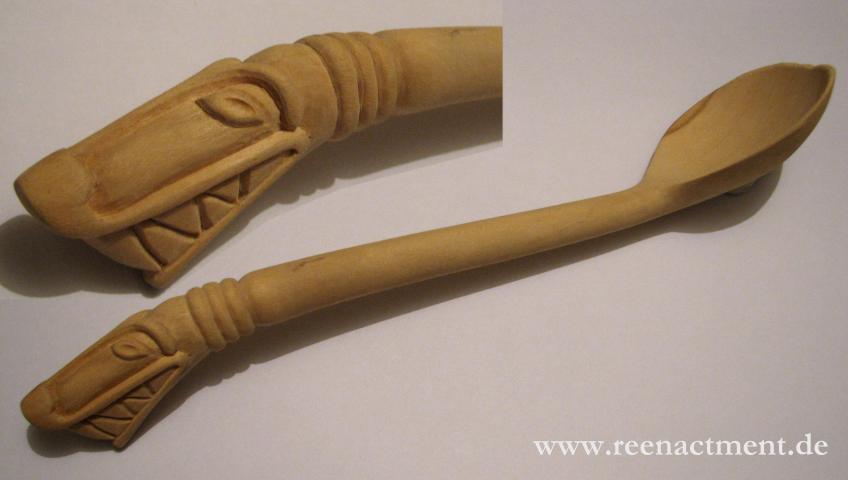 Beschreibung: Geschnitzter Drachenkopf, vermutlich von einem Kellen- oder Schöpflöffelgriff.