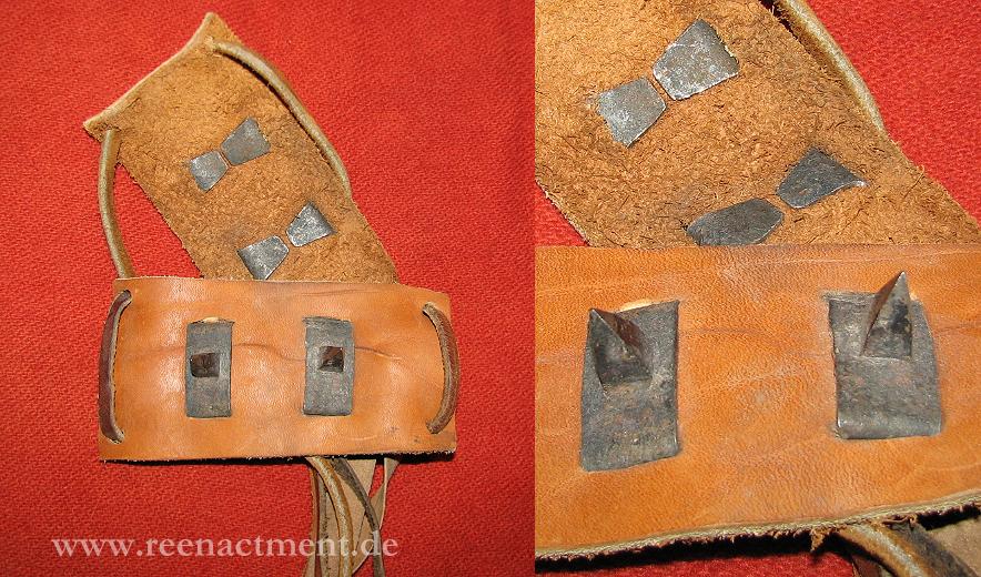 Spikes Solche Spikes wurden unter die Schuhe gebunden, ähnlich den Kufen aus Knochen zum Schlittschuhlaufen. Nur die Spikes aus Metall wurden gefunden, die Montage auf Leder ist ein
