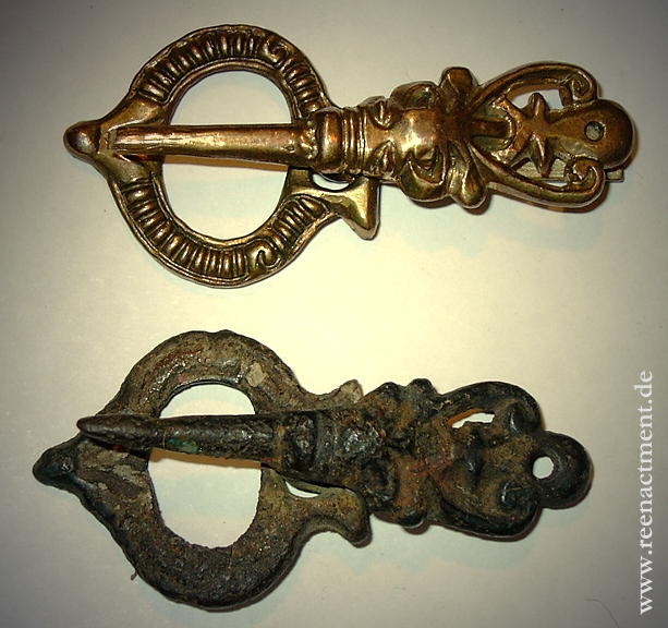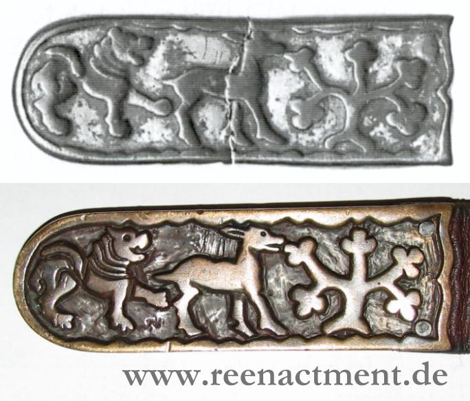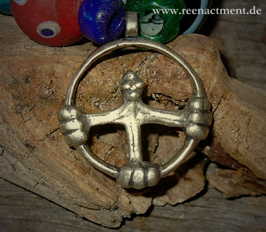 Beschreibung: Der Anhänger selbst ist nicht gefunden worden, wohl aber die Form, in der solche Stücke wahrscheinlich auch in anderen Metallen als Silber gegossen wurden. Die aus Ton hergestellte Gußform stammt vom Burgwall in Berlin-Spandau. Es kann kaum Zweifel daran bestehen, daß es sich bei dem Anhänger um ein christliches Symbol handelt. Dies ist der früheste archäologische Hinweis auf das Christentum im Raum zwischen Elbe und Oder.